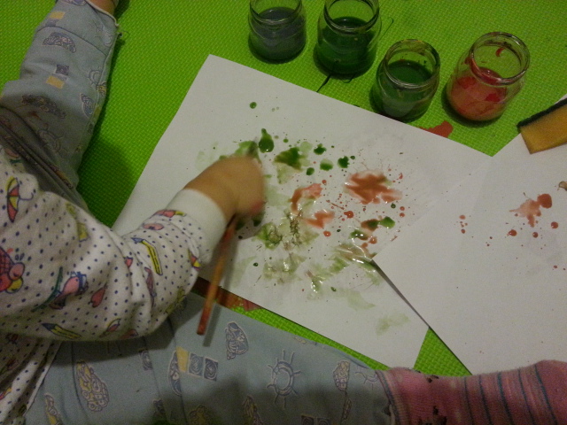 8. Проснулся интерес к краскам, пытается рисовать кисточкой)))