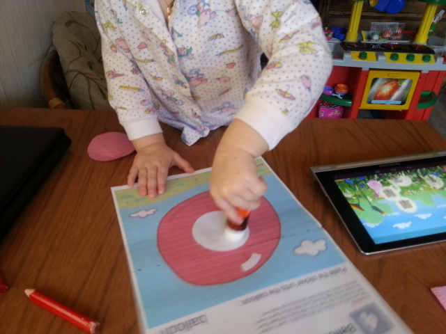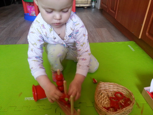 Одевали бусины и резинки на палочки, сделали красную баночку-компот) клеили слону шары и строили дом,который охраняли солдатики. Ещё поиграли с тетрадями кумон-рисовали и клеили))) Спасибо все было очень интересно!!!!