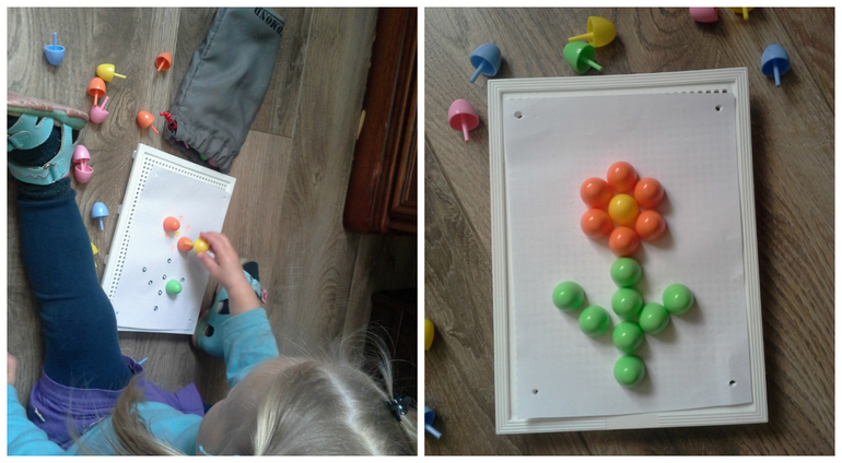 Этот пост у меня уже полгода висит в черновиках, и все руки не доходили дополнить фотографиями и опубликовать. Но в связи со вспышкой интереса Ульяны к мозаике и появлением новых игр исправляюсь)) Речь пойдет о мозаике такого типа - «штырьковой»