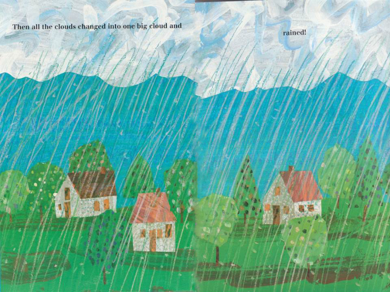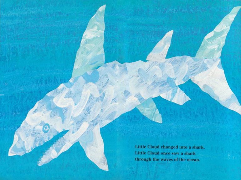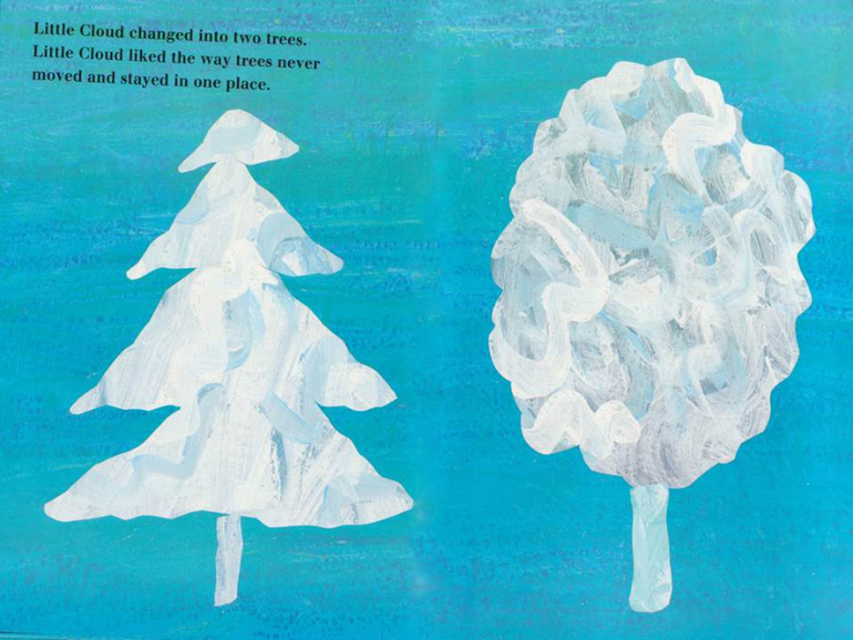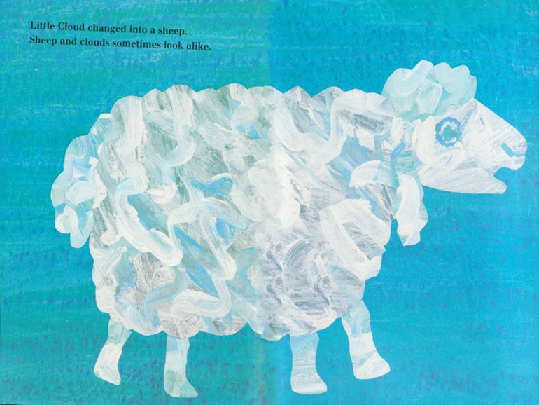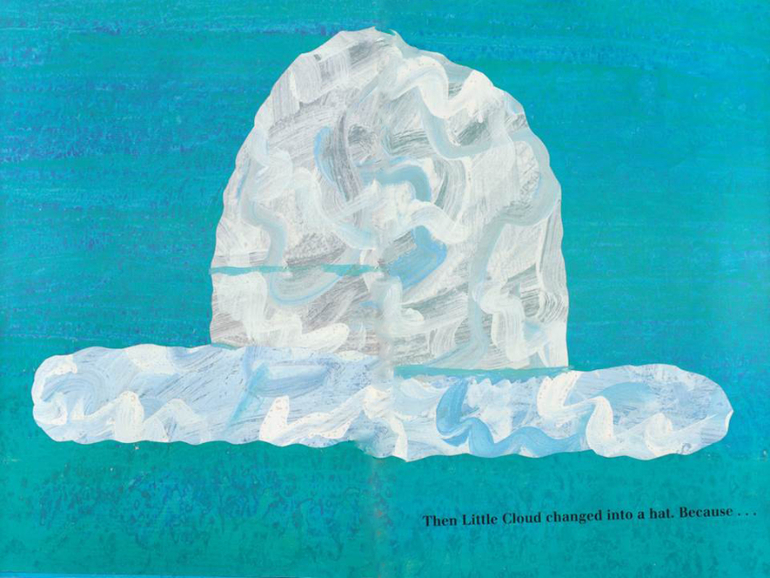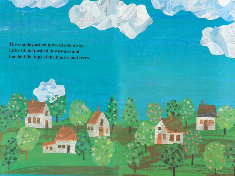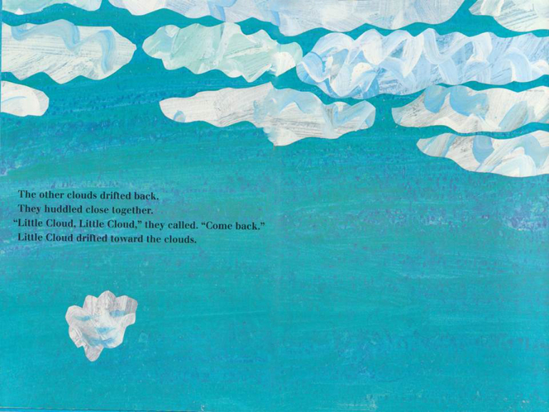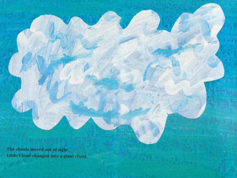 Опять Гусеница, Карл? Не в этот раз. У Эрика есть еще много интересного. Например, Маленькая тучка. Идея взята буквально из воздуха! Тем не менее, нужно быть гением, чтобы создать такую простую и волшебную историю, которую ребенок готов читать даже со страшненьких компьютерных сканов.