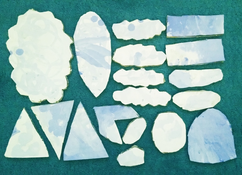 Мы с дочкой и восхищались, и решили нарисовать свою фигню за 5 минут Тучный конструктор. Я вырезала тучи из гофрокартона, а она старательно раскрасила. Сложнее всего было определиться с количеством и формой деталей. Я решила не делать много деталей, иначе дочь просто запутается, и не сможет сложить ни одной фигуры.