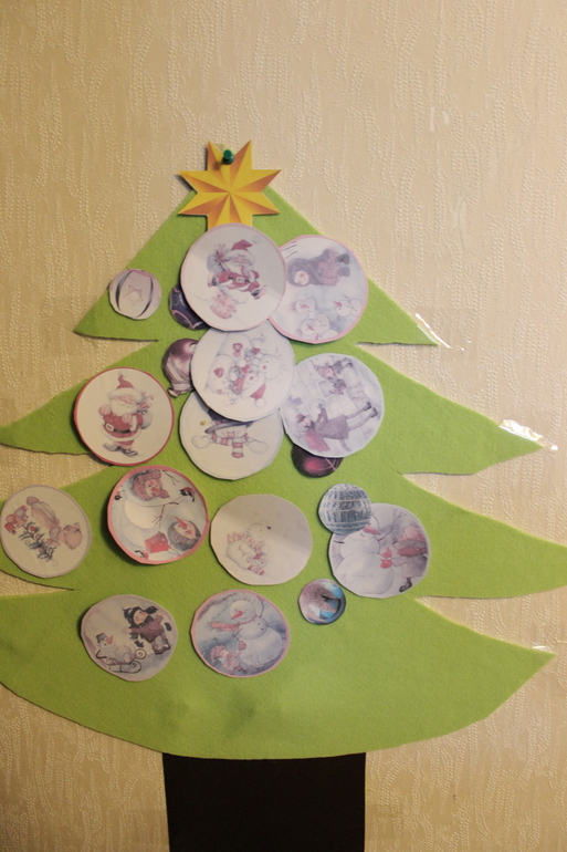 1. Украсили елку ,которую мама сделала накануне из фетра