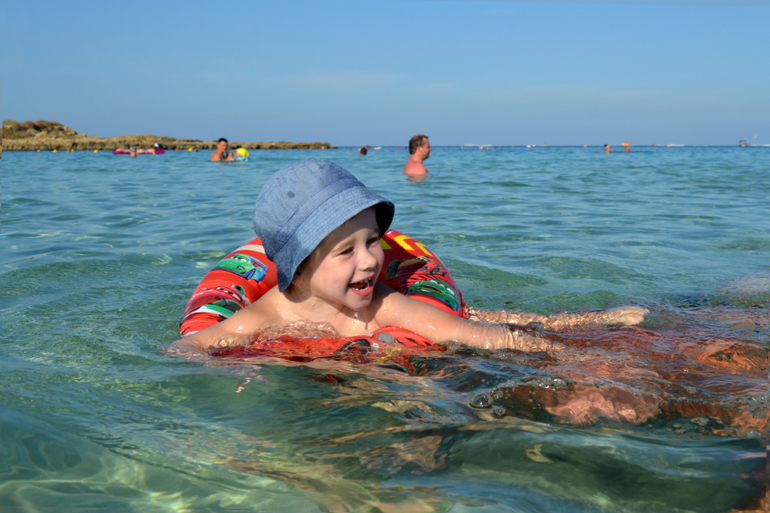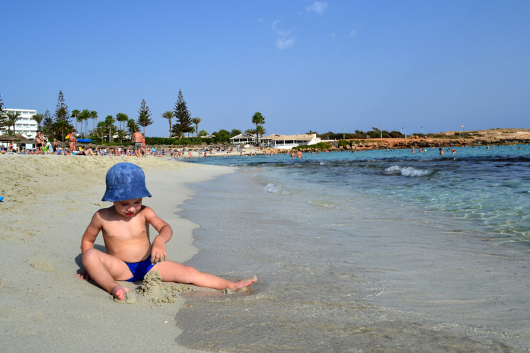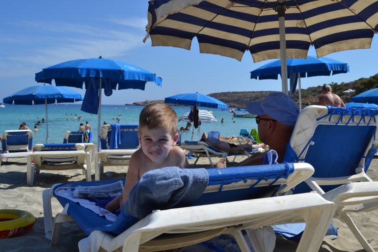 Море очень теплое. На некоторых пляжах (в Айя-Напе, например) неприятно теплое. В среднем 28 градусов. Даже кончики пальцев распаривались, как в ванной. Мы почти и не загорели, потому что целыми днями из воды не вылазили. Ребенок в круге, муж с маской, я налегке. Так как Макар закаленный, акклиматизации не было совсем. В воде сидел с утра до вечера, никогда не вытирали, сам высыхал, в номере в обеих комнатах круглосуточно работал кондиционер на 15 градусов, чтоб держать темпу хотя бы около 22 в помещении. И ни одного шмыга носом и чиха. Видела детей в кофтах с длинным рукавом вечерами, или дозировано купающихся по 5 минут, а потом в полотенце с капюшоном на лежаке. Нам наверное такой философии не понять.