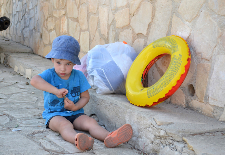 Отельный отдых не для нас, потому на ближайшем пляже мы купались от силы раза 3. И даже бесплатные лежаки и бар на расстоянии вытянутой руки не смогли нас привлечь))) Потому за 8 полных дней пребывания мы искупались на 8 разных пляжах, на некоторые особо понравившиеся возвращались повторно. Первые дня 4 даже не фотографировались, так как хотелось впитать красоту через глаза и кожу, так нам все нравилось. Потом взяли напрокат коляску, и стали бросать фотик с собой в корзину. Кто бы мог подумать, что для Макара, который с 2 лет в коляске не ездил, мы возьмем трость на отдыхе. Но коляска нам реально развязала руки, и в итоге даже на завтрак и обратно в номер сын ездил в ней)