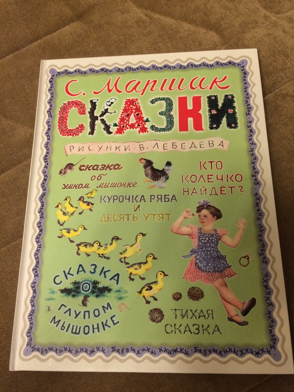 В 2 года ребенка я поняла, что у нас нет Маршака, совсем. Решила срочно исправляться, долго выбирала сборник, остановилась на этом издании - сказки отдельно, стихи отдельно. Но стихи мне почему-то не пришли. Так что пока знакомимся со сказками. Идут не очень, Макар приносит книгу только ради Курочки Рябы в новой интерпретации. И про колечко слушает. Но уверена, что со временем полюбит и другие сказки.