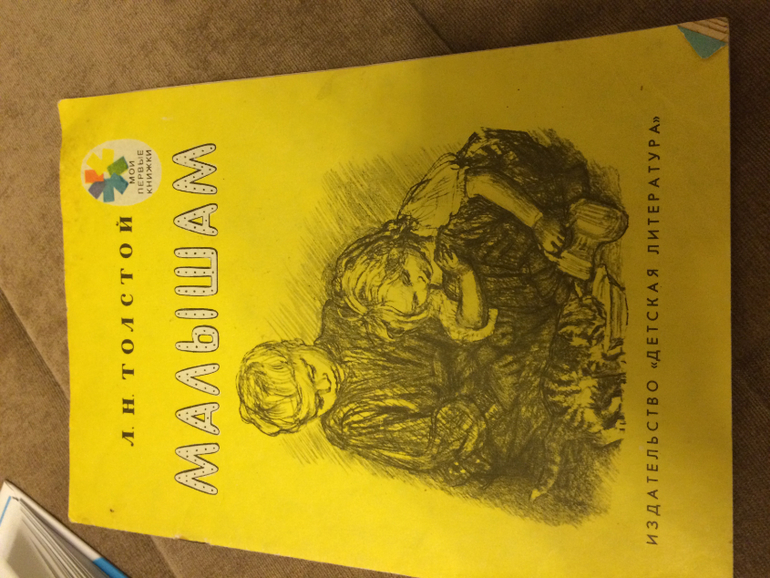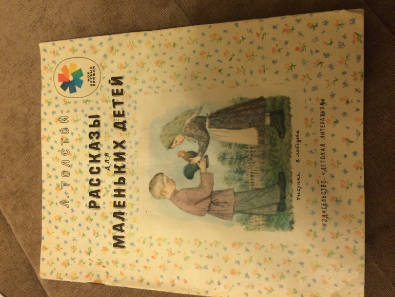 Фотки странно перевернулись, но не суть важно. Это тоже из букинистики свекров. Коротенькие рассказы Толстого, некоторые по одному предложению и картинка на весь лист. Макару нравятся.