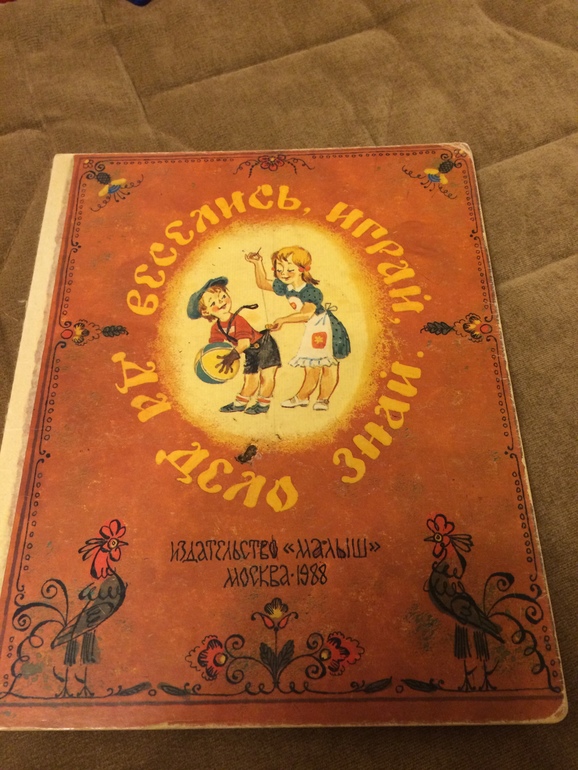 Эту книгу возможно показывала, но в младенчестве она не увлекла ни меня, ни сына. Теперь же достает ее часто, может рассматривать час, просит петь из нее колыбельные. Книга потрепана временем и моим племянником, от которого нам досталась, видимо, племянник тоже ее любил)