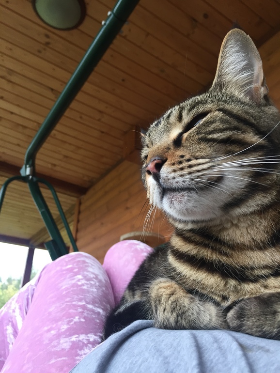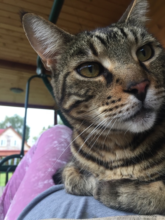 О, младший кот пришёл и лёг прямо на живот😻Впервые за эту беременность. Хотя, ему просто раньше не предоставлялось такой возможности🙈 Да и летом его нет дома, приходит только поесть утром и вечером. А вот с наступлением холодов и дождей - все чаще сидит дома☺️
