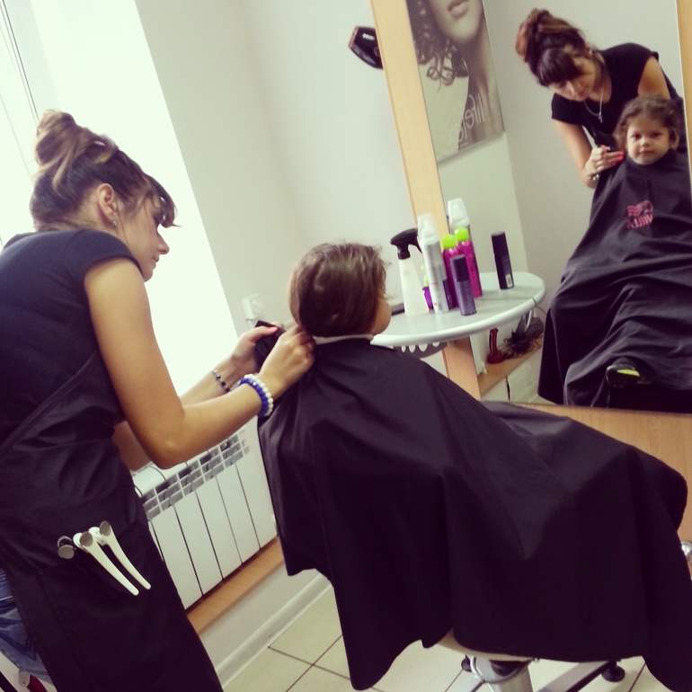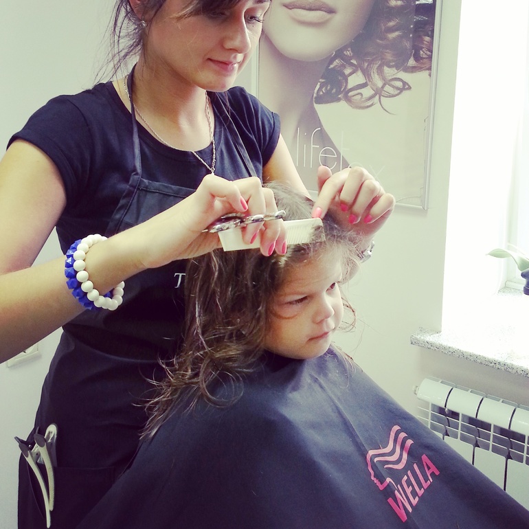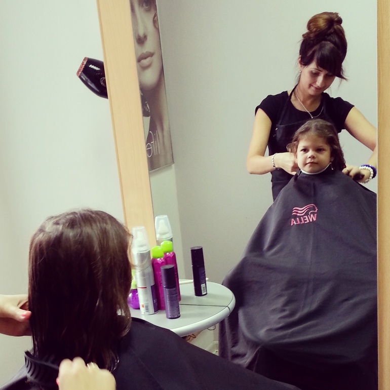 Сама попросилась постричься)!Сидела всю стрижку с важным видом и потом ещё долго рассматривала себя в зеркало!Растёт обезьянка!))