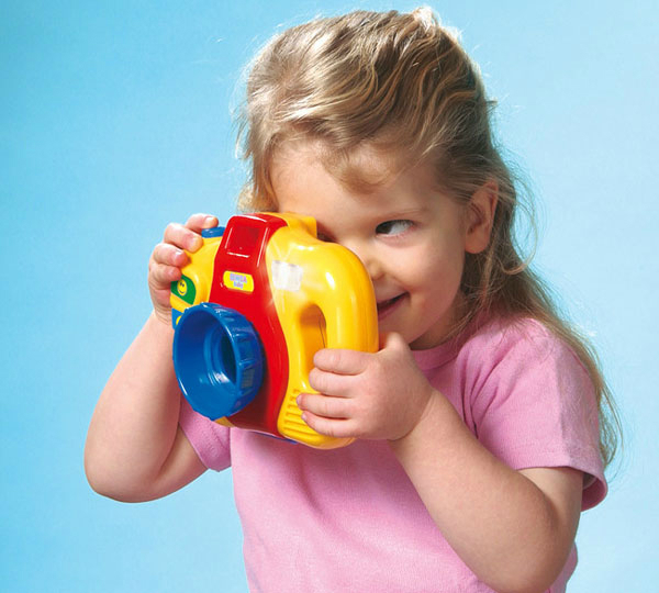 Для детей от 18 мес. У камеры различные функции: вспышка, шум во время съемки. Если нажать на кнопки,то можно услышать различные мелодии. Цена 400 руб.