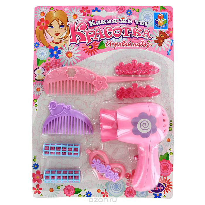 Увлекательный и красочный набор для девочек «Красотка» для ухода за волосами порадует вашего ребенка разнообразными аксессуарами и украшениями, а также феном, которым можно пользоваться, почти как настоящим - нажав на кнопку, почувствуешь на себе легкое дуновение приятного ветерка. Цена 200 руб. - 1 штука.