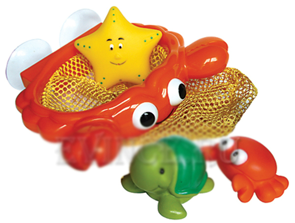 Игрушка для детей от 3 месяцев: игровой набор краб-сетка + 3 игрушки (черепаха, звездочка, краб). Цена 400 руб. - в наличии 2 штуки.