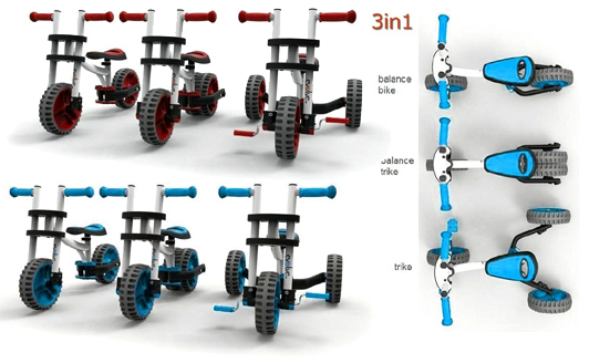 YTRIK1 Велобалансир-велосипед-трансформер Y-BIKE Evolve Trike. Удивительная трансформация -покупая одно транспортное средство, Вы получаете сразу 3. 1.Велобалансир на 2 одиночных колесах. 2.Велобалансир на 3 колесах: 2 сдвоенные задние колеса, 1 переднее колесо. 3.Трехколесный велосипед с педалями. Сиденье меняется по высоте в 3-х положениях. Съемные педали. Мягкие резиновые ручки. Рекомендуется для детей от 1-1,5 лет. Цена 6800 руб.