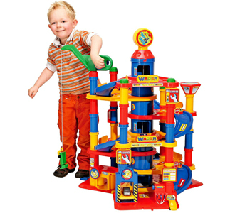 37862 Wader Паркинг 3-уровневый с дорогой и автомобилями. На верхние этажи можно взобраться по разным дорогам с поворотами. На трассе есть бортики, которые не дадут машинке соскользнуть. Предусмотрен подъемный кран, который приводится в движение путем вращения ручки. На первом уровне автозаправочная станция для трех авто, автомойка. Размер: 112х112х50 см. Цена 4700 руб.