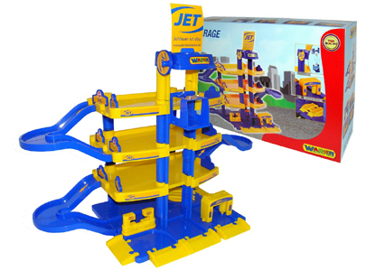 40213 Wader Паркинг JET 4-уровневый. Между уровнями можно перемещаться на лифте или по спиральной дороге. Лифт механический, чтобы привести его в движение, нужно покрутить ручку. На первом этаже находится мойка - арка с валиками. А также подъемник для ремонта машин. Размер: 77х34х58 см. Цена 1900 руб.