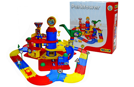 37855 Wader Паркинг 4-уровневый с автомобилями. 4-уровневая башня-паркинг предоставит ребенку множество развлечений, а именно: 7 уровней парковки, АЗС, мойка, ремонтная секция, кран, лебедка, также в наборе есть машинки. Размер: 77х77х63 см. Цена 4400 руб.