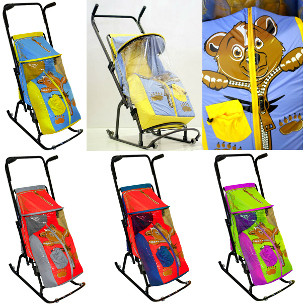 Санки-коляска Снегурочка 4-Р МЕДВЕЖОНОК с 4 колесиками. Размер: 110x48x105 см. Вес 7 кг. Цена 3000 руб.