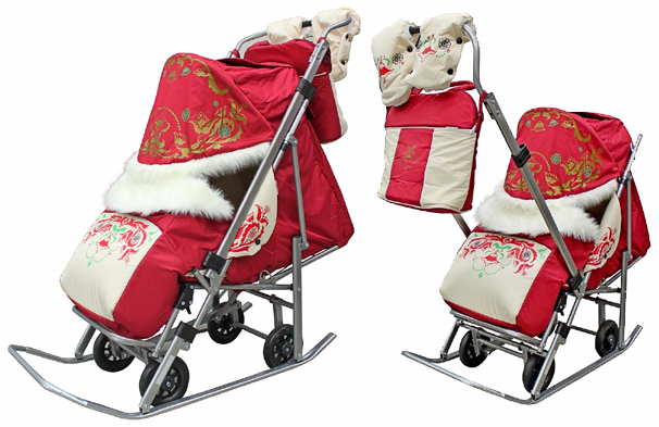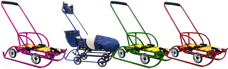 Санки-коляска Снегурочка 4-Р БЕЛЬЧОНОК с 4 колесиками. Размер: 110x48x105 см. Вес 7 кг. Цена 3000 руб.