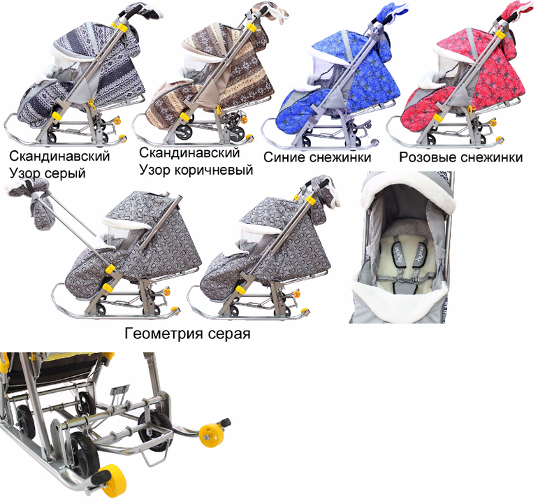 Санки-коляска Герда 4-Р3 с 4 колесиками Скандинавский Узор. Размер: 110x48x105 см. Цена 3300 руб.
