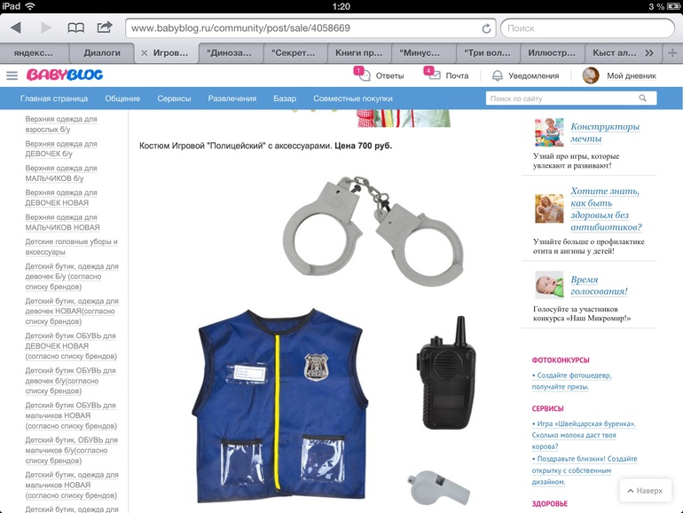 Костюм Игровой "Полицейский" с аксессуарами. Цена 700 руб.