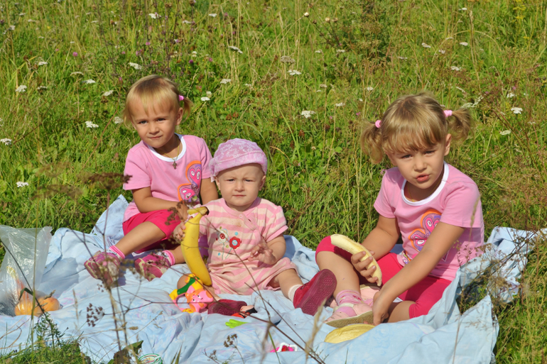 Пьём из кружки с 5 мес.Блин, умелок никаких нет, даже не знаю, что писать)))) Как-то не учу я её ни пока-пока (некого провожать нам), ни ладушки ничего такого. Среднюю дочку тоже не учила всему этому, и ничего:-) В общем, хвастаться нечем)) Вот, устроили сегодня небольшой пикник на прогулке:)
