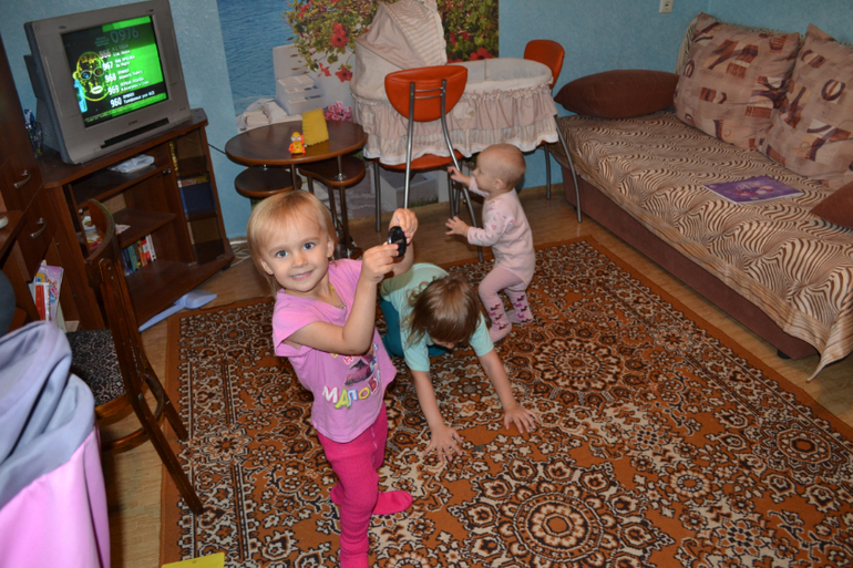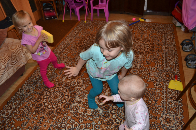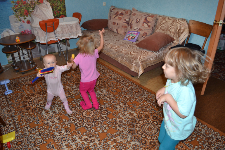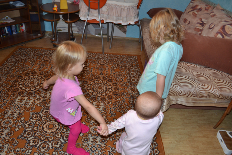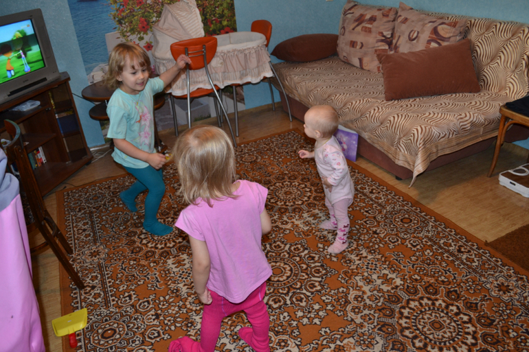 Я и моя семьяТак забавно смотреть, что теперь у нас не двое детей+лялька, а трое ходящих детей)) Мне так смешно за ними наблюдать)) Вот мы у моей мамы (фотки расплылись, двигаются быстро)