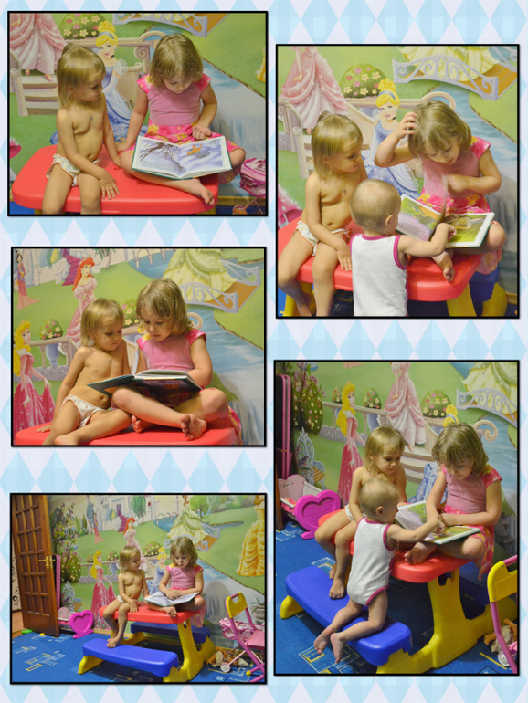Вечером захожу в детскую: Диана читает Алисе про Бэмби. Та внимательно слушала всю сказку.