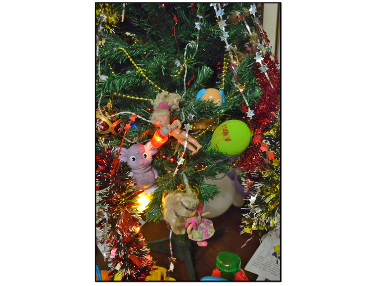 Алиса, пока я не видела, нарядила ёлочку)) Задачка: найди 5 лишних предметов)