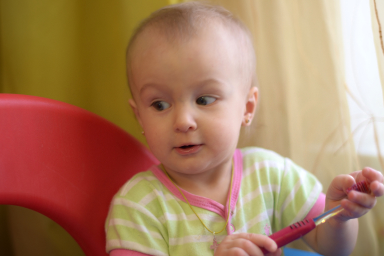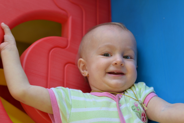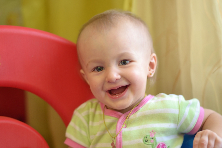 АлесточкаДостала пирамидку. Все детей учат до года пирамидки собирать. А я достала один раз, она колечки погрызла, и я убрала. А сейчас второй раз достала, и она уже всё понимает, говорю ей какое колечко взять и куда его надеть - и она слушается, и делает правильно. Собрала пирамидку и похлопала в ладошки, что всё получилось. Раньше она в кукольном домике первым делом вытаскивала все двери. А когда я показала ей, что оны нужны для того, чтобы открывать и закрывать, она стала открывать, засовывать руку, что-нибудь брать, закрывать, потом открывать и класть обратно. Стала пальчиком показывать на картинки, фотографии. При этом объясняет на своём языке и говорит постоянно что-то. Показывает на фотографию мою на стене, переводит палец на меня «Мама». Правильно!:) Да, это я, это мама на стене:) Взяла мои тапки. Пытается впихнуть в тапок свою ножку. Не получается. Поправляет, ставит тапок под другим углом и снова пробует, и снова…J Смотрит, что мы делаем и тоже начинает так делать: все морковки вставляют в полянку в игре Зайка-вылетайка, и она садится и вставляет на равнее со всеми. Все начинают хлопать - и она как все. Все начинают топать - и она тоже так делает. Все радостно прыгают- и она тоже. Начинают танцевать - и её теперь берут в хоровод. Она с ними за ручки тоже хороводы водит. Любит листать книжки с тонкими страницами. Листает аккуратно. Не рвёт (пока ещё). Во мне вселилась надежда, что хоть она пойдёт в меня, и не будет рвать и рисовать в книжках, как старшие лет до 2х. Может, хоть она будет их беречь? Тут потянулась шевелить рамки на стене, сидя у меня на руках, я говорю: «Не надо», она : «Не нана!» )) Прям будто за мной повторила) Очень много болтает малыш, и если не прислушиваться, то кажется, что говорит речью) Т.к. всё с интонацией то вопросительной, то восклицательной, то повествующей. Так забавно) Все слышат и удивляются, как она болтает. Многие говорят, что рано заговорит. Но мне кажется, что это вообще не связано. И даже наоборот. Может, она на своём языке будет очень долго болтать, кто знает. Но мне всё равно. У меня уже две болтушки на уши мне присевшие есть, так что мне и двоих пока хватит))