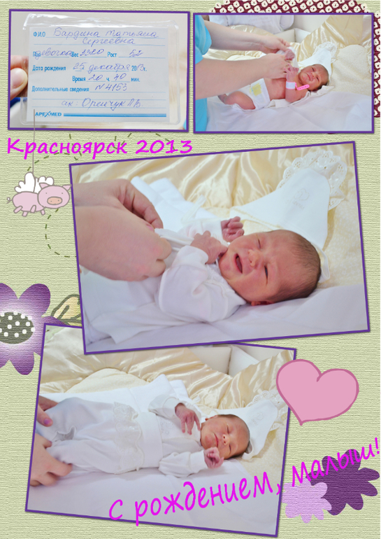 Лестюша полежала минут 5 у меня на животе, потом её обработали. А потом стали взвешивать и решили посмотреть время, наконец. Было 20.40, так и записали. Т.е., наверное, примерно в 20.30 я родила. Через 1 час 10 минут примерно от начала схваток. Какая у меня молодец врач оказалась! Как хорошо, что не отходила от меня! Знала, что роды могут быть скорыми. И совсем не больными, что очень было приятно. Вообще, не роды, а праздник был у меня!:-) И главный подарочек лежал рядом на столе уже в пелёночке.