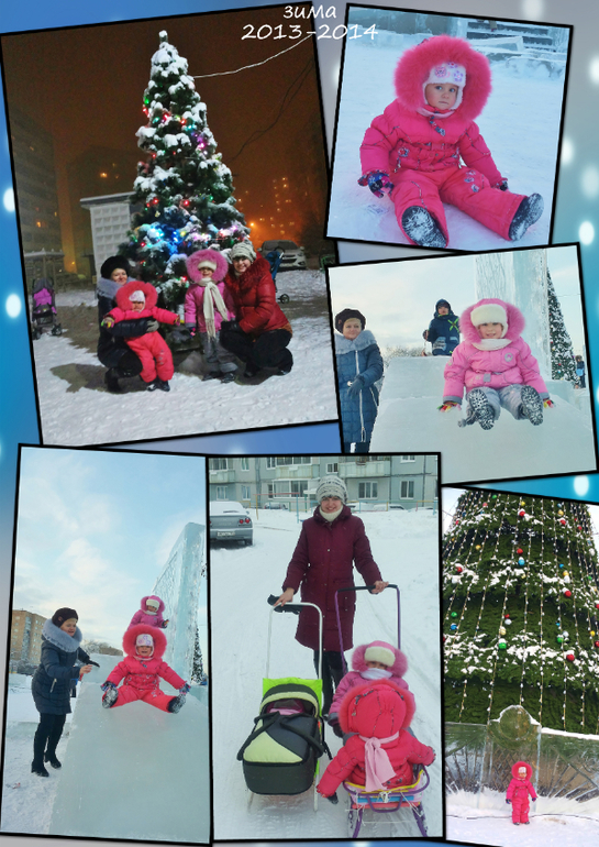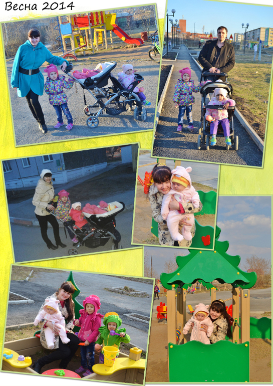 Здесь сверху фотки, когда я ещё была беременна, наши прогулки. А внизу, как мы гуляли, когда приехали домой: с двумя санками - обычные с коробом от коляски и двойные.