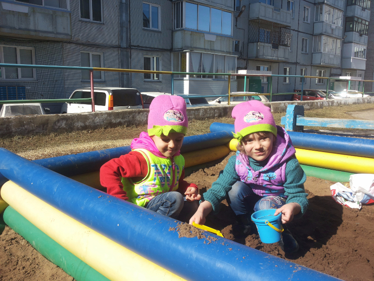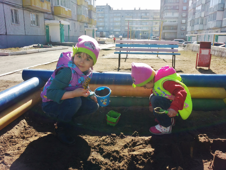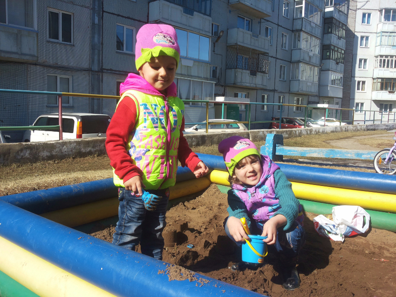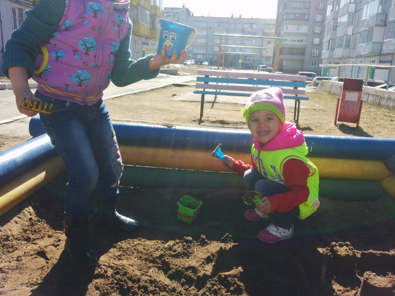А тут зафиксирована перваяф песочница этой весной:) (сейчас снова холодно, в куртках)