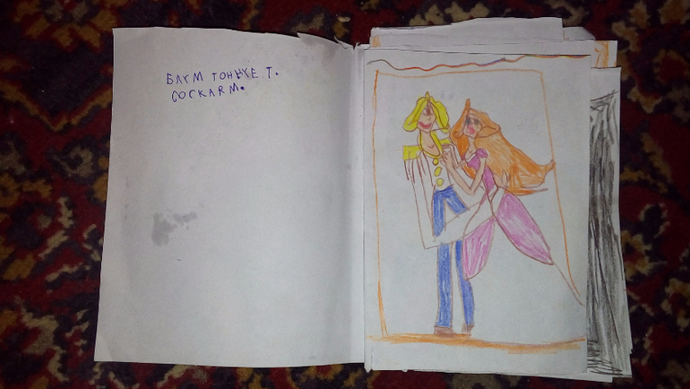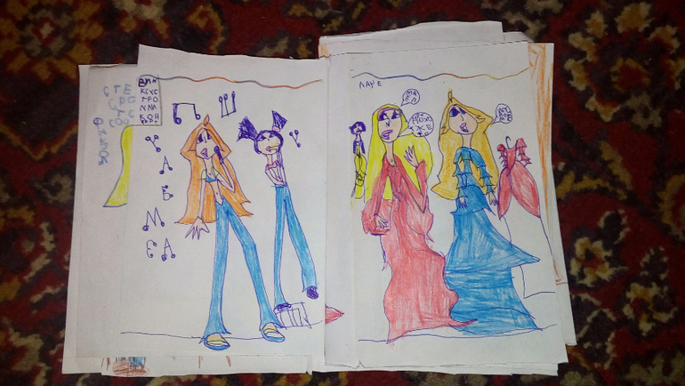Как же мило. Конечно, надо оставить на память. Рисунки хорошие. Я похожие наверное лет в 12 рисовала...хорошая композиция и фантазия.