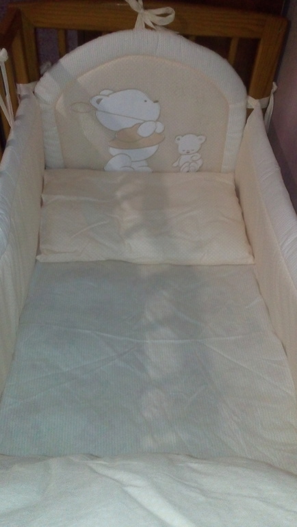 Комплектикв кроватку. И то только потому, что достали старые бортики рваться. Захотелось, чтоб Сияша тоже с нормальными поспала.