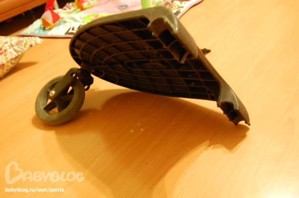 там на ось коляски одеваются такие пазы что ли чтобы потом подножку в них вставлять