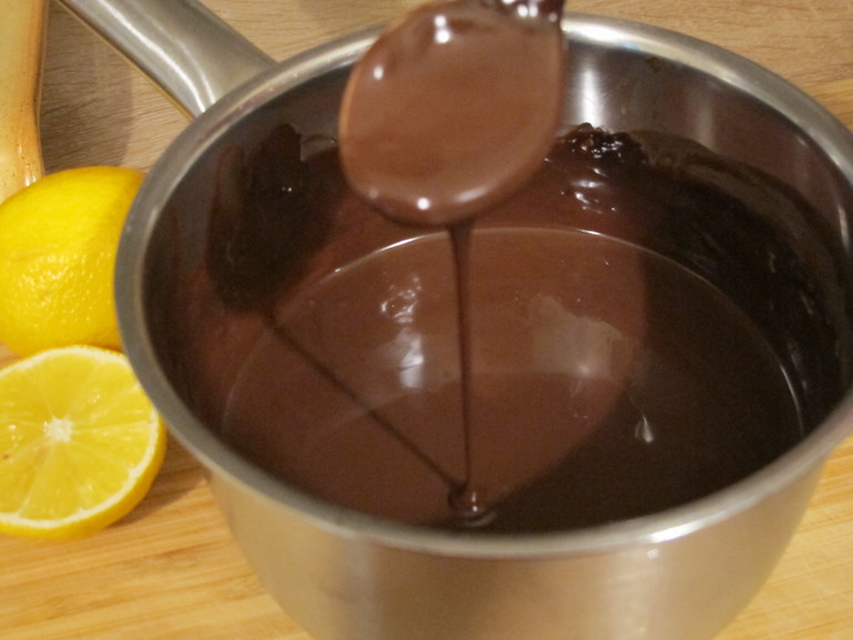 Растопила плитку темного шоколада, немного молока, когда немного смесь остыла, добавила в глазурь две ложки сметаны.