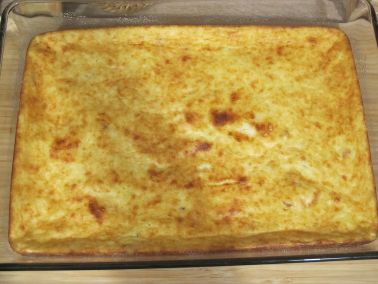 Всегда делаю запеканки на манке, в чисто еврейском варианте в тесто можно добавить еще сметану 5 столовых ложек, но здесь я этого делать не стала.