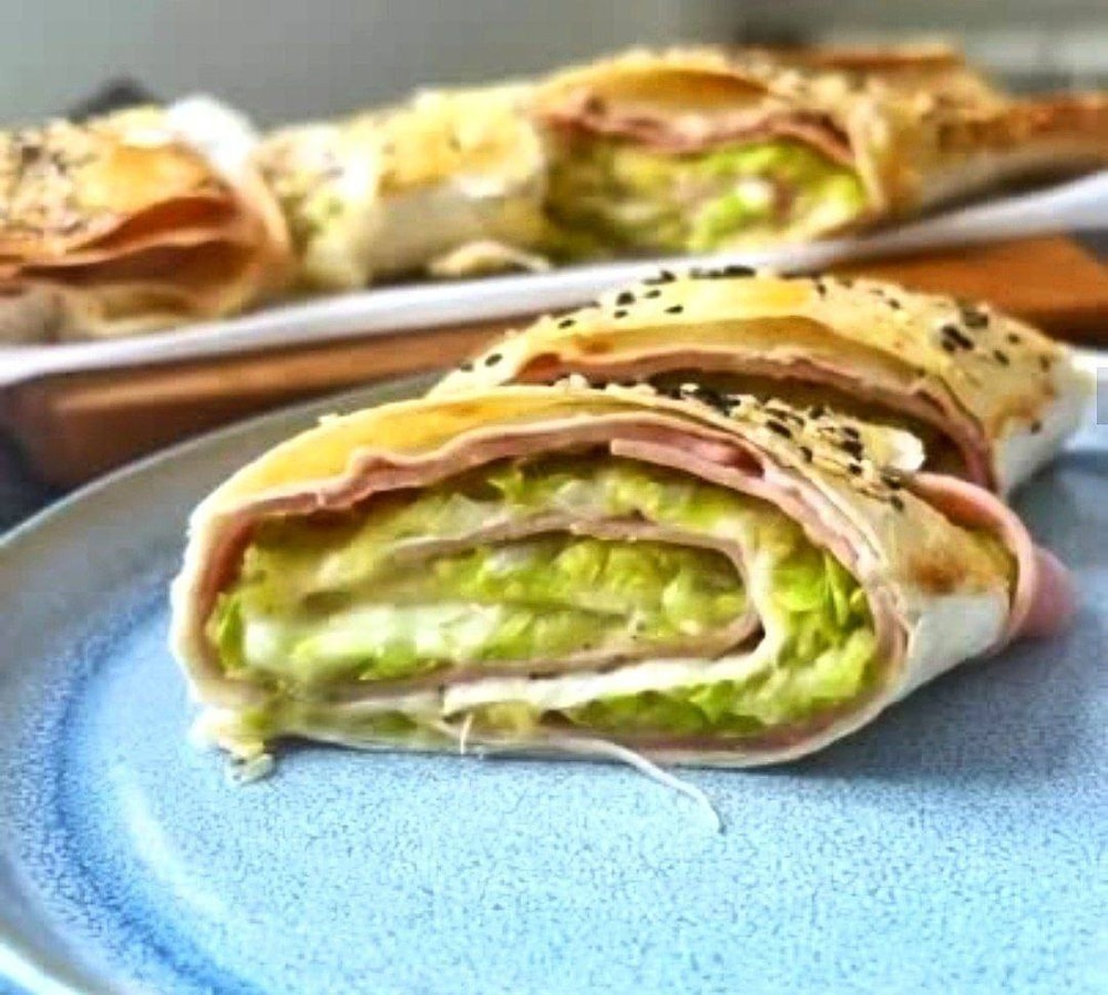 📌КБЖУ на всю порцию : 143-8,6-6-12,6 ✅Ингредиенты : ✔Кабачок- 500 г ✔Ветчина куриная или вареная грудка - 200 г ✔Лаваш тонкий-150 г ✔Яйцо - 1 шт ✔Сыр - 150 г ✔Лук - 50 г ✔Соль, приправы - по вкусу ✔Масло для жарки -2 г ✅Приготовление: 🔶 Кабачок натереть, отжать. Лук мелко нарезать. Сыр натереть. 🔶Обжариваем лук на капле масла до золотистого цвета, добавляем кабачок и специи, обжариваем еще 5 минут. 🔶 На лаваш выкладываем ветчину ( берите с хорошим составом), распределяем обжаренный кабачок, посыпаем натертым сыром. Сворачиваем в рулет, смазываем яйцом и посыпаем кунжутом. 🔶Убираем в заранее разогретую духовку , температура 190С на 20 минут .