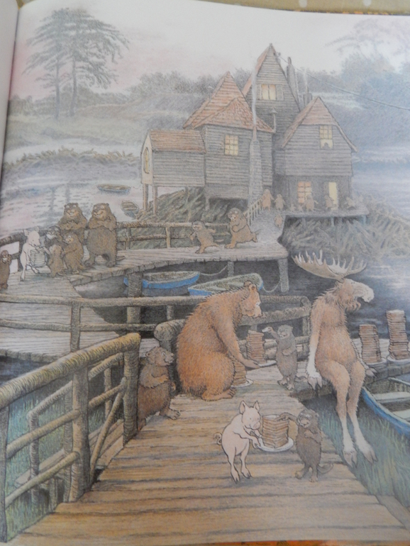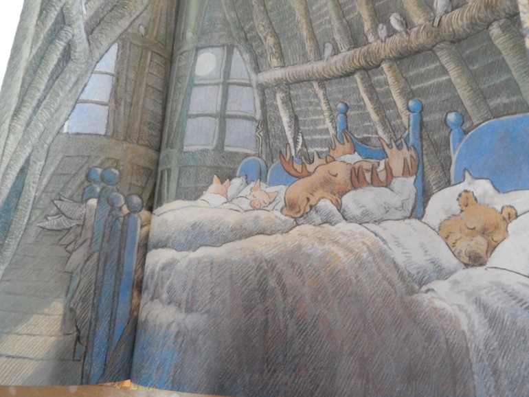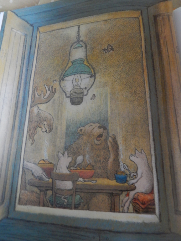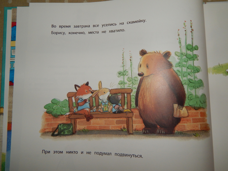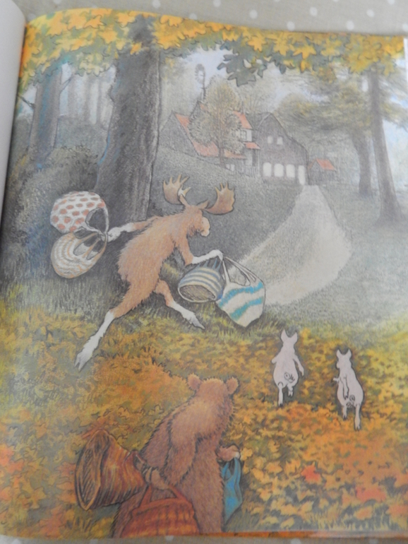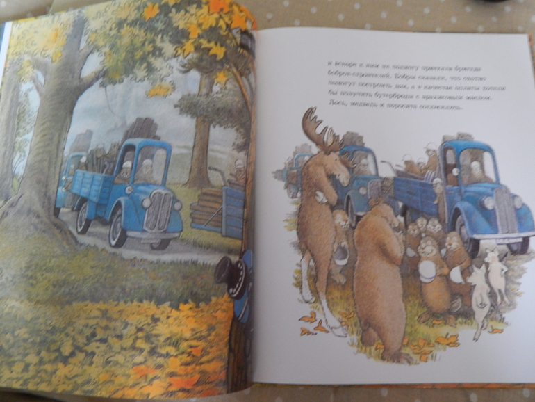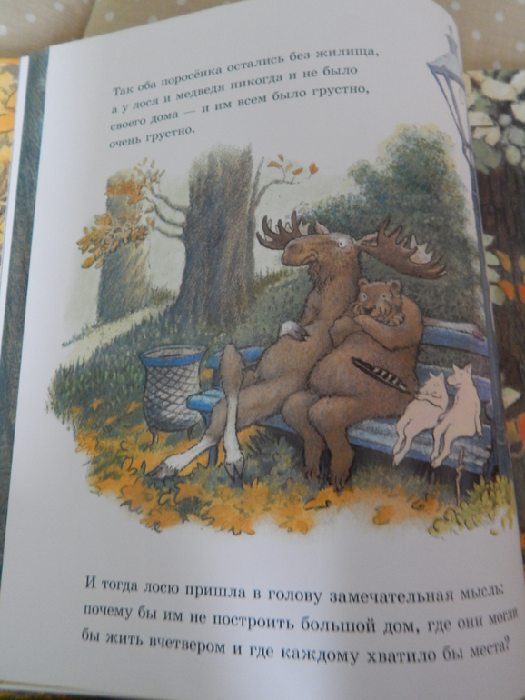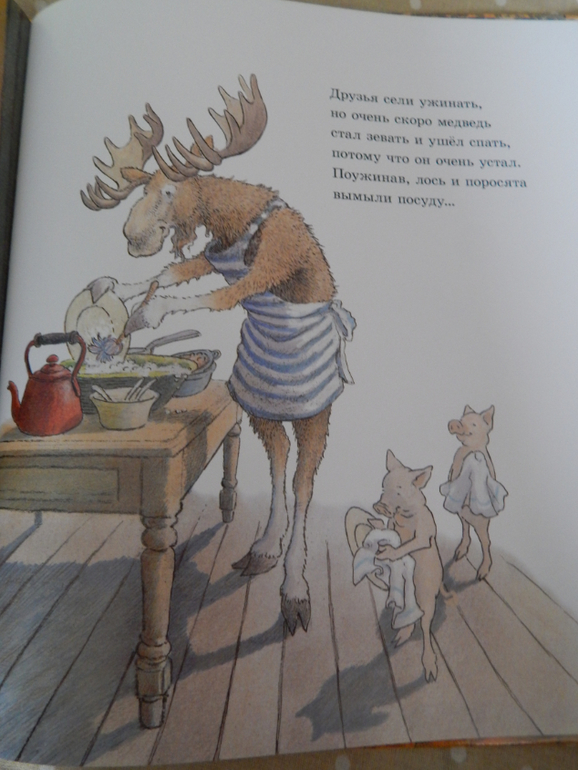 Чет фотки не очень получились -в реале они такие уютные, спокойно-философские, но и с юмором тоже - лось в фартуке зацепил), мне книга очень понравилась - и текста немного и красивые пейзажи и сами персонажи, интересная прорисовка, но она дорогущая, конечно.