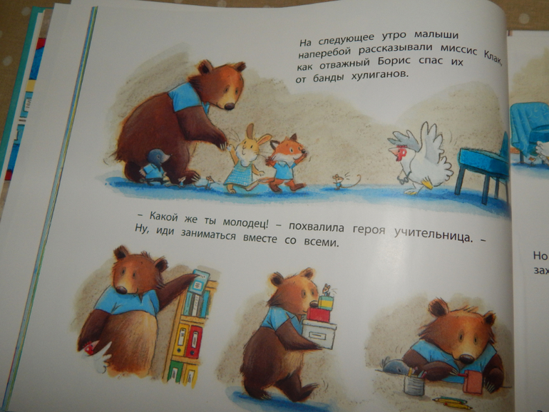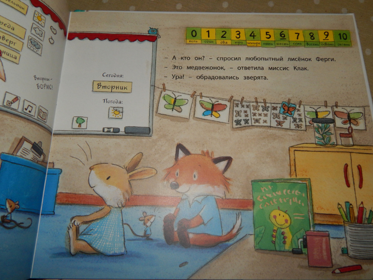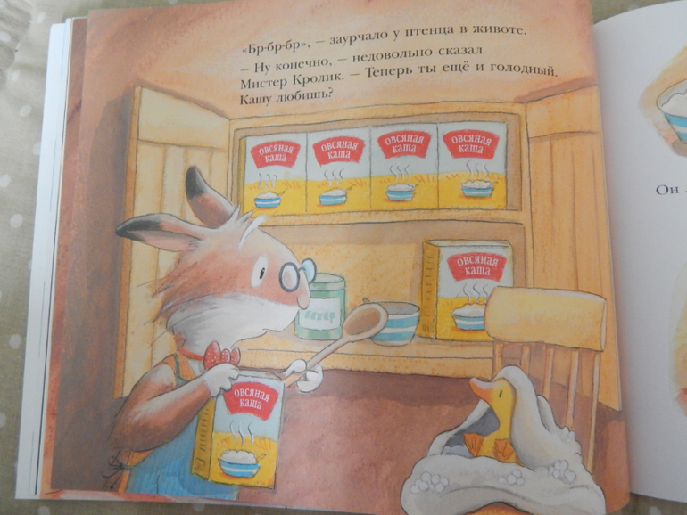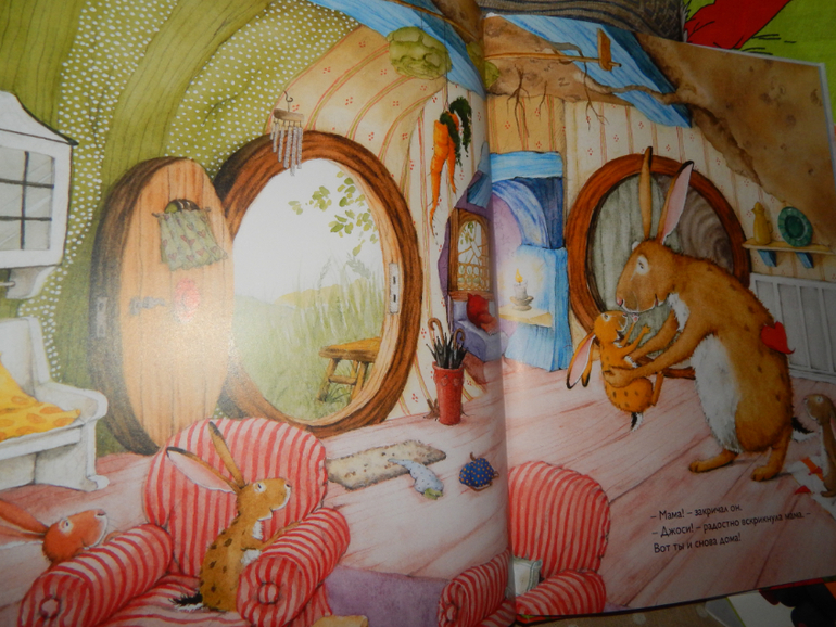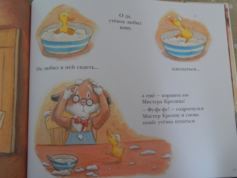 Книжица забавная, рисунки правда милые, мистер Кролик корчит смешные рожи везде, нам понравилась!