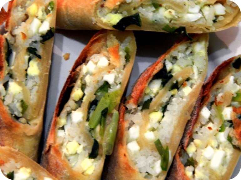 КухняДелали уже несколько раз. Все предельно просто и очень вкусно! Начинки можно любые, я делала мясной фарш+сыр (сырые), яйцо вареное+лук зеленый, а сегодня сделали яйцо+лук+рис отварной.