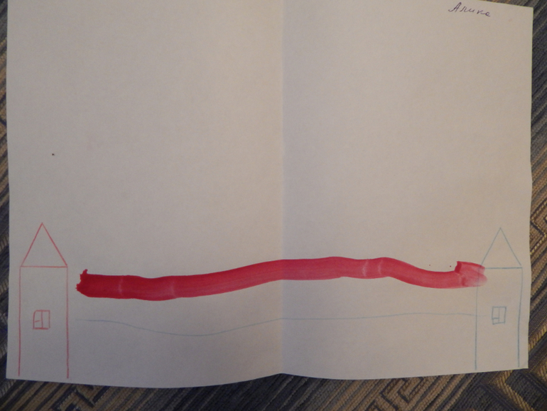 Из сада, надо было провести дороу между двумя домами и покормить курицу с цыплятами. Еще не забрала ,как они репку раскрашивали - хорошо раскрасила, за контур не вылезла.