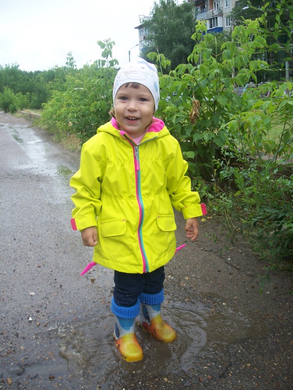 Правда, лезла и в очень глубокие лужи и прыгала с брызгами во все стороны)