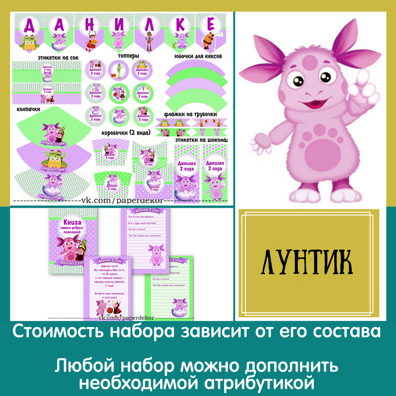 Стоимость любого набора зависит от его состава, в любом наборе возможна замена цвета или персонажа. Вы выбираете только то, что нужно именно для вашего праздника.