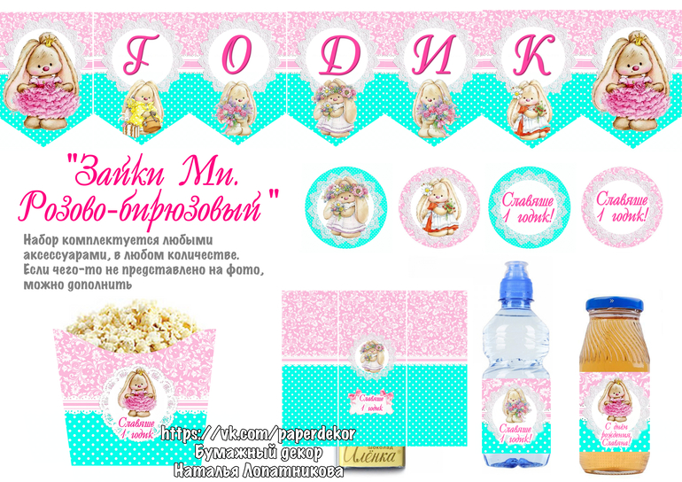 Набор на день рождения "Зайки Ми", в розово-сиреневом цвете