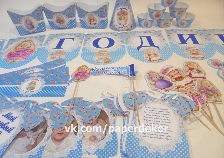 Набор на день рождения "Зайки Ми", в голубом цвете