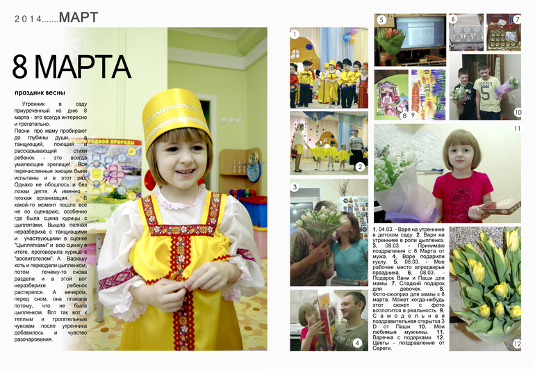 В планах был проект в виде журнала. О всех прелестях данного проекта Катя писала в своем дневнике, за что ей отдельной спасибо! Благодаря ей, я снова возобновила работу над своим проектом 2014! Собрала все свои "сырые" странички в развороты, пока только за январь,февраль. Меня изначально привлекла кажущая простота проекта. Да, да, именно кажущая, потому как в работе все гораздо сложнее оказалось. Сделать странички еще часть работы. А вот когда их начинаешь складывать в разворот, то получается, что все твои, кажущие уже самодостаточными и законченными странички, совершенно не гармонируют друг с другом. Не зря, видимо в редакции работают люди, специально обученные графическому дизайну. Я конечно не графический дизайнер, но все равно решила показать то, что у меня получается, для идей и вдохновения так сказать :))