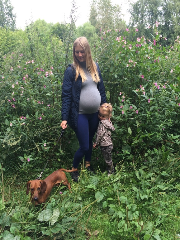 Моему малышу уже тесно, очень часто упирается ножками в ребра, ручками в бедро и зависает так... Все движения уже такие сильные, четкие. Дышать сейчас тяжело сидя, космический домик видимо достиг своих пределов.