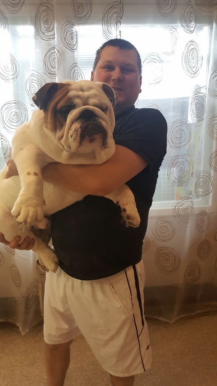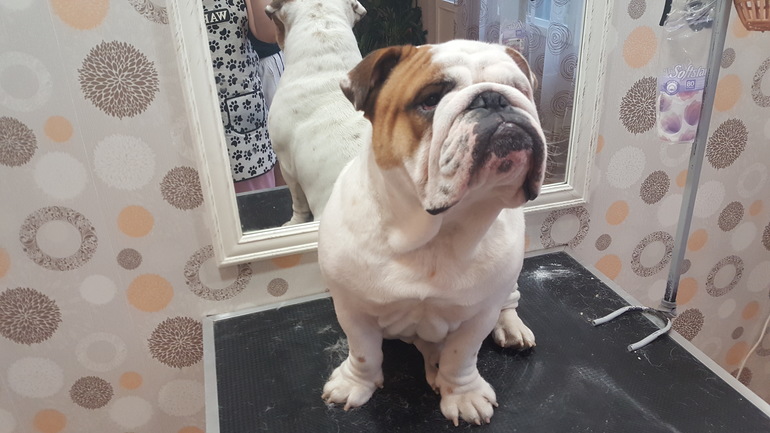 Приходил помыться,выдуть линяющую шерсть и подстричь когтики восхитительный Жорик, ребенок 8 месяцев. Очень добродушный, хрюкающий, слюнявый и прикольный. Процедуры выносил похрюкивая и попукивая,после изволил заиграть нас до полусмерти, я не знала, что бульки такие активные и игривые. Когда нам надоело и мы присели на диван, Жора продолжал совершать тигриные прыжки к нам на ручки, одаривая слюнявыми поцелуями)Если еще придет, обязательно позову Нику, ей понравится.