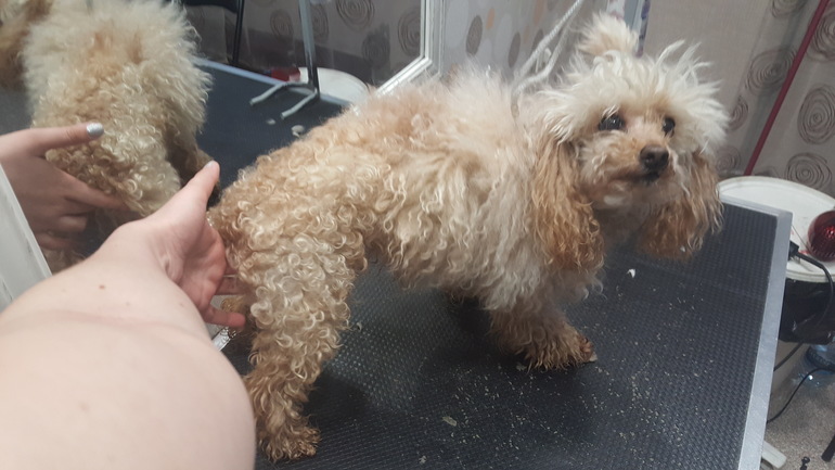 на фото не видно,но там прикорневой колтун.и собака очень и очень грязная,3 раза намыливала.да,это не совсем пипец какой криминал,бывает и хуже,но все равно,как пуделист в прошлом, не могу на такое смотреть. У меня есть хозяева, которые водят редко, но хотя бы дома сами стригут триммером морду, хвост и лапы,причесывают, и тогда даже заросший пудель выглядит пристойно. А тут...собака еще и худая излишне и стрижка эта не совсем для нее, ей бы модерн, но хозяева хотят так